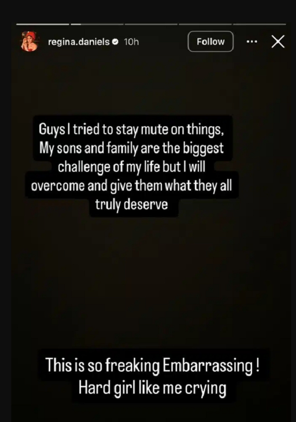 Her emotional outburst has stirred widespread reactions online, with many fans urging both Regina and Nwoko to settle their marital issues privately. As of now, Senator Nwoko has not publicly responded to the allegations.