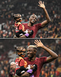 'Like father, like daughter' — Fans react as Osimhen celebrates with daughter after brace against Bodø/Glimt