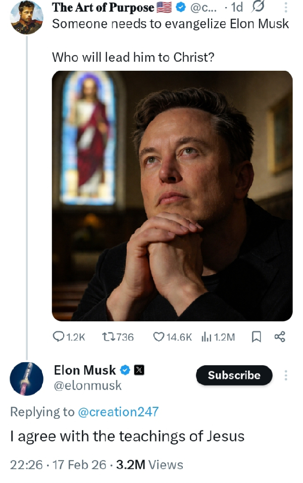 Replying to the post, Musk confirmed that he aligns with Jesus’ teachings, a statement that quickly drew widespread attention online.