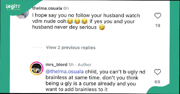 "I hope you didn’t follow your husband to watch VDM's nuude video. If yes, you and your husband are not serious."